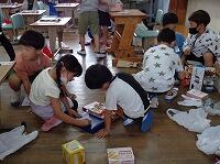 1年生は、具体物を使って友達と「いろいろな かたち」の学習を進めていました。
