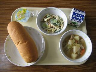 本日のメニューは、コッペパン、牛乳、かぶ入りポトフ、マカロニサラダ、日向夏みかんゼリーでした。