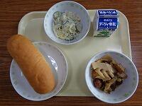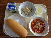 コッペパン、ミネストローネ、いもいもサラダ、レモンゼリー、牛乳