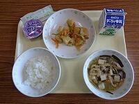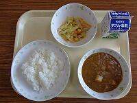 しろごはん、チキンカレー、野菜ソテー、牛乳