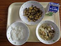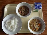 しろごはん、ピーマンの肉みそ丼、のっぺい汁、牛乳