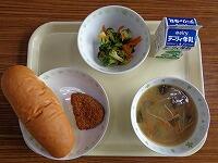ミルクパン、カボチャひき肉フライ、ブロッコリーサラダ、コーンスープ、牛乳