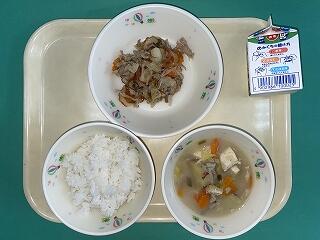 今日の給食:9月18日(木) メニュー【肉野菜炒め、具沢山の味噌汁、ごはん、牛乳】