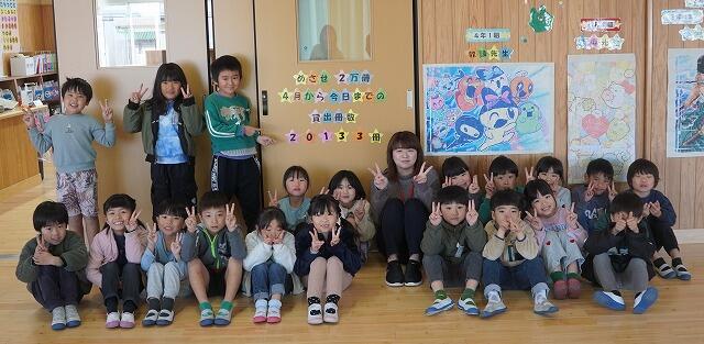 子どもたちはよく利用していて、4月から12月までで、9085冊の貸出がありました。市立図書館の方から「たくさん借りてくれています。すばらしいですね」と称賛の言葉をいただきました。