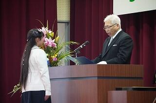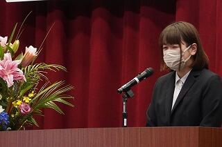 三味線もとても上手で会場の皆さんから大きな拍手をいただきました。そして、落ち着いて、はっきりとした声で堂々と発表しました。乙房地区の伝統を守るために自分が活動してきたこと、その中で友達や地域の方との交流を通して学んだことをしっかり伝えることができました。すばらしかったです。