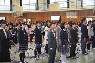 6日の午後、庄内中学校で新入生入学説明会が行われました。庄内中学校入学予定の本校の6年生も参加しました。
