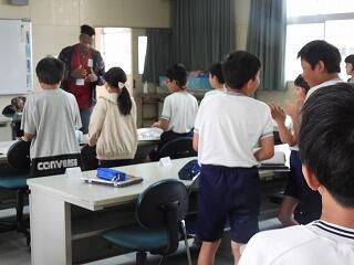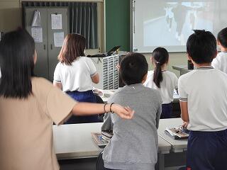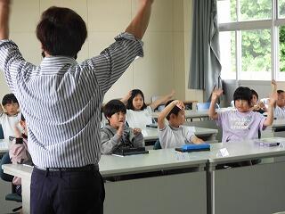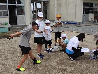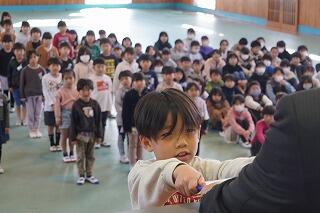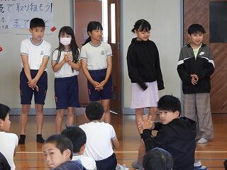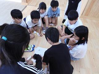 4年生が1月15日(月)から、南九州大学人間発達学部と共同で体育科の授業「用具で『打つ』動きを高める運動」を行っています。