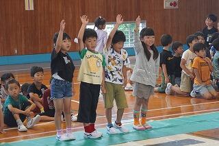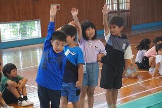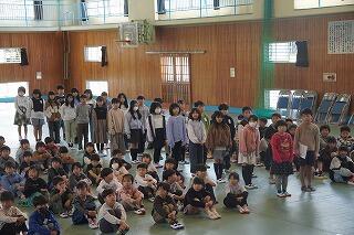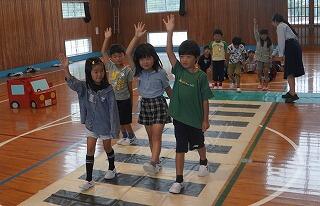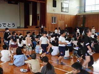 今日は1年生の自己紹介にはじまり、「だるまさんがころんだ」「ジャンケン列車」と全校みんなで楽しく活動しました。