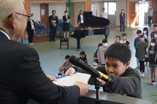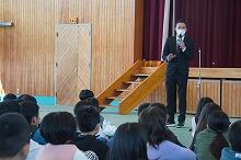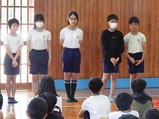 乙房小学校の子どもたちの「自分から」を紹介されました。「自分から」のあいさつ、「自分から」の友達への声かけ、「自分から」の朝のボランティア・・・、これからも、みんなの「自分から」の行動を見つけられることを楽しみにしていますと、締めくくられました。