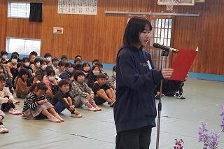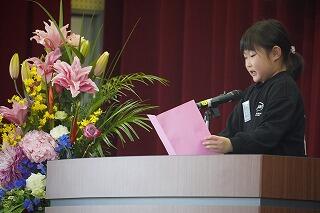 乙房小からは6年生児童の時任彩禾さんが「乙房地区の伝統を守る」の題で意見発表しました。