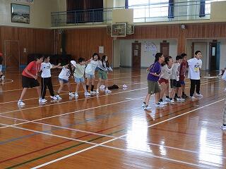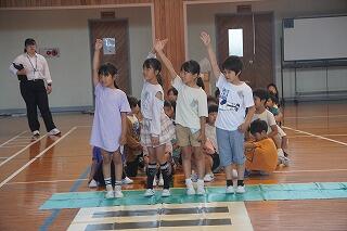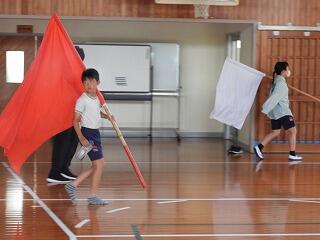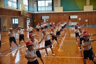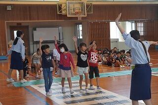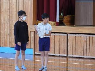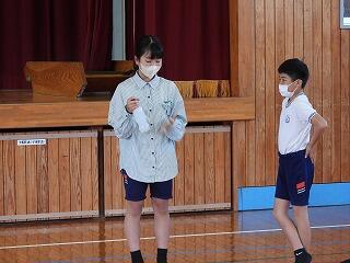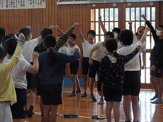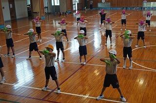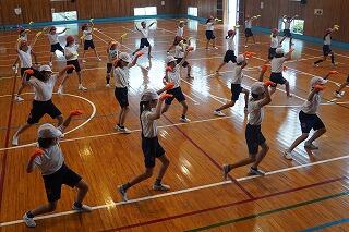 学年では、雨のため運動場が使えないので、体育館でできる表現の練習をがんばっていました。