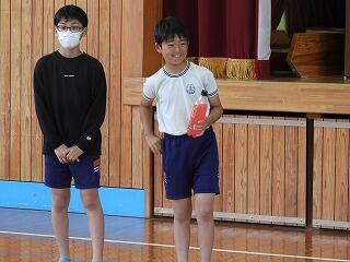 1年生が体育の学習で、短なわや長なわを使った運動に取り組んでいます。なわの縛り方やほどき方をマスターし、引っかからないように一生懸命跳ぶ子どもたちです。前回し跳びや後回し跳びだけでなく、かけ足跳びや交差跳び、あや跳びにも挑戦しています。途中で引っかかってしまってもあきらめずに、また跳んで何度も挑戦して頑張っていました。