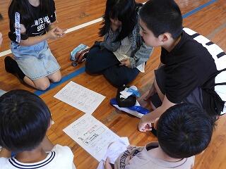 各学級から出された意見をもとに、各委員会の代表と4年生以上の学級代表が集まって、話合いをしました。相手の立場に立って、「どうすれば感謝の気持ちが伝わるのか?」「どうすれば喜んでもらえるか?」について話合いました。「お手紙を書く」「お手紙だけでなく花も贈ったらどうか」「花はずっと飾ることができる折り紙で作ったものがよいのではないか」「学校に来てもらいたいけれど大変ではないかな」「持って行く方法もあるよ」など、様々な意見がだされました。反対意見や賛成意見、質問なども交えながら話合いが進みました。
