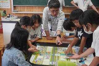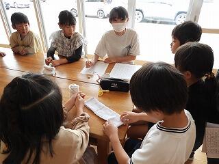 自分たちの「住みたい街」を作るために何が必要なのかを、「病院、学校、・・・」「楽しく遊べるところもいるよね」「安全のために警察署や消防署いるよね」「それって、そんなにお金が必要なの?」「それ要らないと思う」「お金(税金)が足りなくなってきたよ」等と、子どもたちで楽しく、真剣に話し合っていました。法人会の皆様も、各グループに入っていただいてサポートしていただきました。