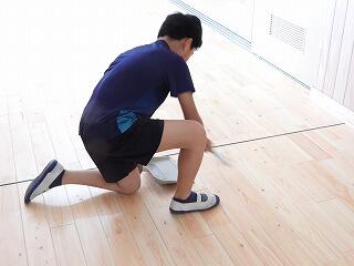 1年生は初めなので、テストのやり方の練習をしました。今日は「反復横跳び」と「ソフトボール投げ」の練習をしました。反復横跳びは、難しかったです。フロアに引いてある1メートル間隔の3本ラインのまん中の線をまたぎ、スタートしたら、右→まん中→左→まん中→右…と足を動かす(ステップ)。ラインは踏むか、またぐかすればよいのですが、右、まん中、左・・・このステップが難しかったです。