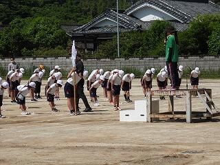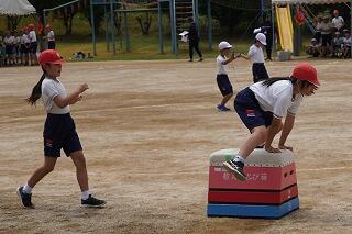 2年生が体育科の学習で跳び箱を使った運動遊びをしていました。