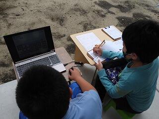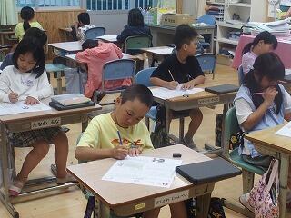 1時間目の様子です。5年生は運動会の後片付けをしてくれました。タブレットPCを使っての運動会新聞作り、かけ算の筆算練習、テスト、漢字の復習、係決め等に取り組んでいました。