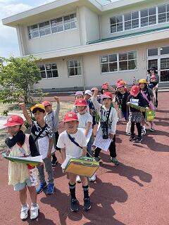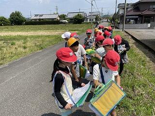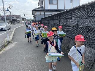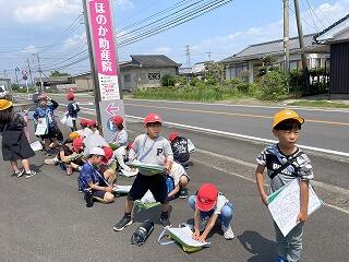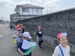 今日は2年生が生活科の時間に学校周辺の「まちたんけん」に行きました。「何があるかな?」「どんなところかな?」と、郵便局、駐在所、助産院、歯科医院、コンビニ、乙房神社、こども園、・・・とたんけんして回りました。