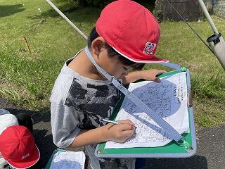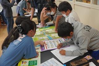 これまで見たことがある場所でも、子どもたちなりに、視点をもって歩くことで、自分たちが住んでいる地域の人々の様々な営みや自分との関わりに気付くことができます。たんけんの後、さっそく、たんけんでの「気付き」を教室で書き出していました。