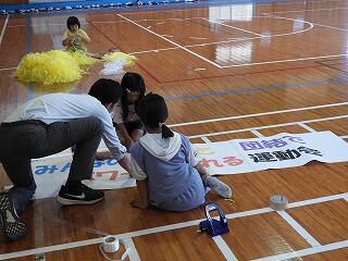 南九州大学の御支援のおかけで、活動する場や用具がたくさん準備してあり、指導や支援を行う先生もたくさんいて、子どもたちはいつも以上に満足な様子です。毎回、次の体育の時間を楽しみにしています。