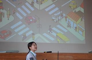 交通安全協会の方の話が分かりやすく、子どもたちも最後までよく話を聞いていました。交通安全教室で学んでことを実際の生活の中できちんと守り、登下校や放課後に安全に生活ができるといいです。