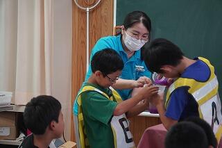 はじめに講師の先生方は子どもたちに好き嫌いについて尋ねながら、味には基本的に「甘み」、「苦み」、「酸味」、「塩味」、それに「うまみ」の5種類があることを説明してくださいました。