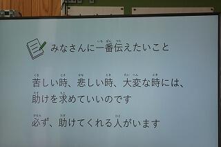 「苦しい時、悲しい時、大変な時には、助けを求めていいのです。必ず、助けてくれる人がいます。」