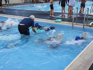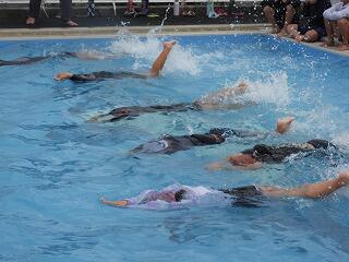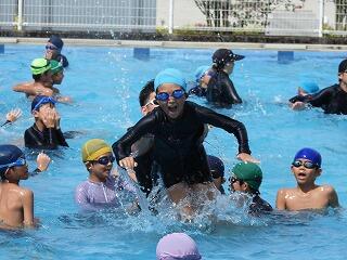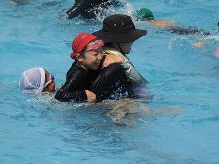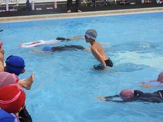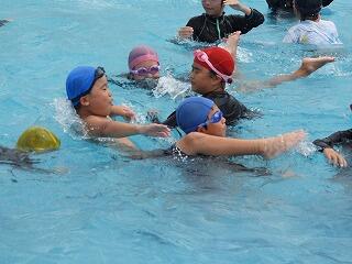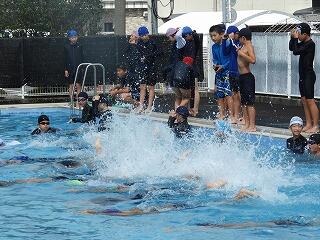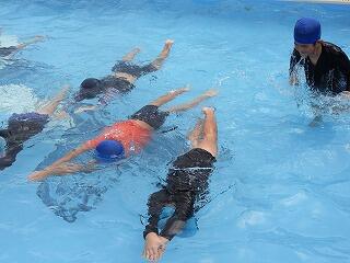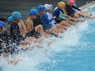さすが高学年、バタ足の水しぶきがすごいです。「とにかく床に足をつかずにプールを横断」という課題も難なくクリア。