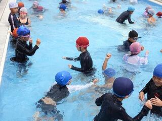 いつの間にか上手に浮くこともできるようになりました。校長先生に手を引かれて嬉しそうな子どもたちでした。