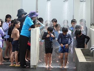 今年最後のプールでは、3年生も4年生もどれだけ泳げるようになったか記録を取った後、自由時間を楽しんでいました。楽しい時間が過ぎ、プールに向かってお礼のお辞儀をすると、最後のシャワーを浴びてプールとさよなら。