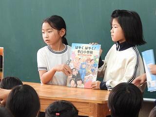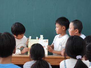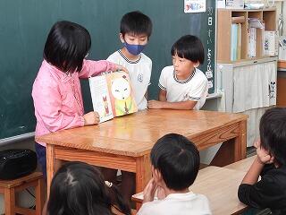 2年生は国語です。「がまくん」と「かえるくん」が登場する物語で、たくさん出てくる会話文を、どちらが言ったのかを前後の文章などを基に判断するという内容でした。