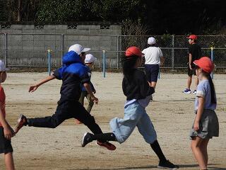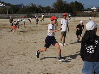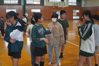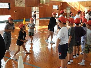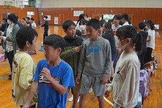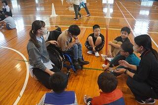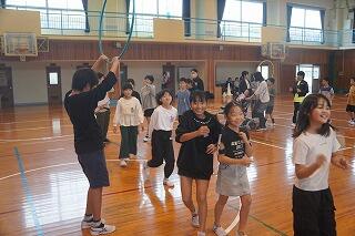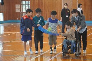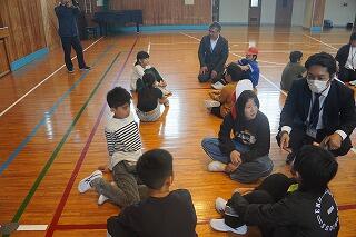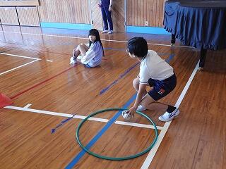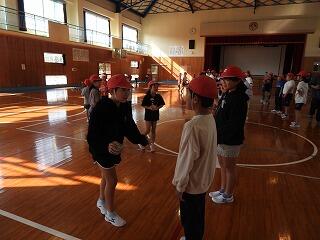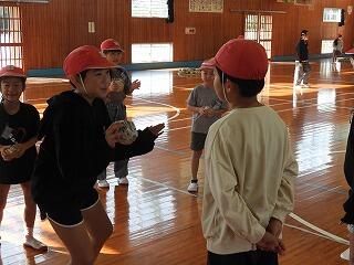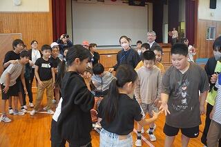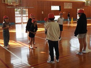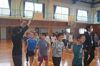 今日は、都城きりしま支援学校の5年生の子どもたちが来校しました。オンラインで交流しているとはいえ、初対面です。最初は、緊張した様子も見られましたが、体を動かすうちに徐々にほぐれてきました。