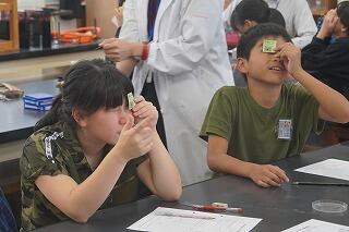 このあと子どもたちは塩や米酢、コーヒー、だし等の匂いを嗅いだり、食感を確かめたり、実際に味わったりしました。「しょっぱい」や「すっぱい」、「にがい」などと感想を言い合いながら5つの味を体感していました。