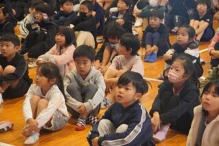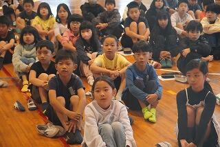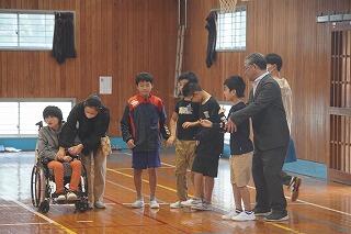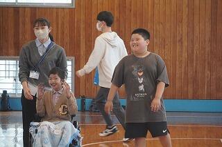 子どもたちの、たくさんの笑顔と笑い声で体育館がいっぱいになりました。きりしま支援学校の子どもたちも、乙房小学校の子どもたちも交流をとても楽しんでいました。