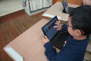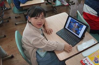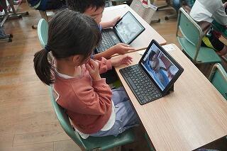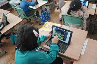 校庭や校内、そして家庭で題材を選択し、1人1台端末を活用して写真を撮影し、今日はその写真に観察メモを書き込んでいました。
