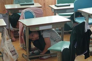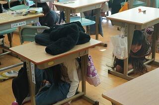 学校では常に教師が子どもたちの側に付いているわけではなく、地震はいつどこで起こるか分かりません。それに備えて、自らの身は自らで守るという考え方に基づいて「いのち」を守る行動訓練です。