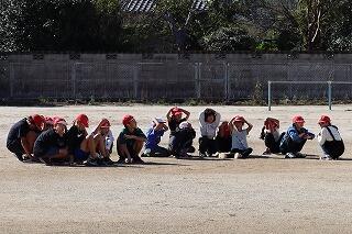 9月2日(月)には自分の教室で学習している際に地震が発生したことを想定して避難訓練を行いましたが、本年度2回目11月7日(木)の地震対応の避難訓練は「県民一斉防災行動訓練「みやざきシェイクアウト」に参加しました。