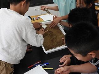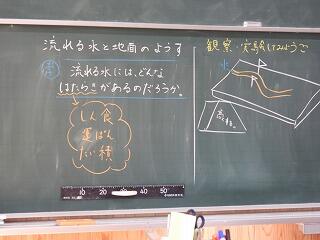 おかげで、「侵食(削る)」「運搬(運ぶ)」「堆積(積もらせる)」という「流れる水の3つのはたらき」がよくわかった5年生でした。