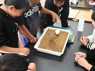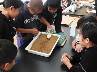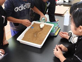 5年生は、理科で「流れる水のはたらき」の学習をしています。