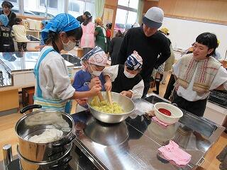グループで協力して、洗ったり、切ったり、火加減を見たりとご飯たきとみそしる作りに取り組んでいました。
