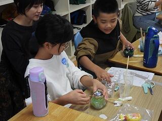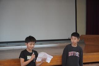 子どもたちが夏休み中に、「こんなものがあったら楽しいだろうな」、「こんなものを(材料)、こんな使い方をしたら役にたつかも」、「こんなものがあったら便利だろうな、助かるだろうな」という視点で、創意工夫して作り上げた作品の表彰式です。