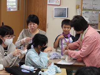 ここまで約1時間で全員が終えることができました。この後、実際にミシンを使って縫製作業をした5年生でした。