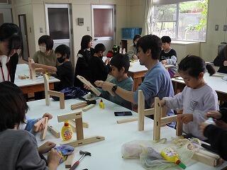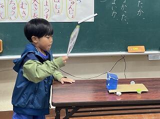 今日は1年生に説明する前に、クラスの友達に実際に作ったおもちゃを見せたり、作り方の説明をしたりしました。