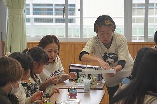 今日の授業は、4年生が参加し、LOVEらぼキッチンの江夏敬子様が講師を務めてくださいました。南九州大学の先生と学生さんもサポートに入ってくださいました。
