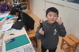 後半はグループの友達と表現する「虫」と、その動きを話し合って、チームでの表現にチャレンジしていました。それぞれの子どもたちの工夫が見える楽しい学習でした。