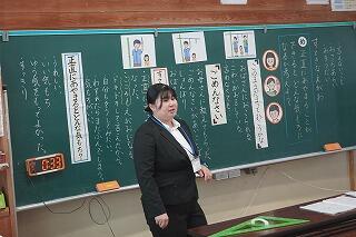 授業の流れや具体的な指導、教材準備と指導担当の先生に指導を仰ぎながらずっと準備を進めてきました。実習生は緊張していましたが、子どもたちは、いつも以上にはりきって学習に取り組んでいました。