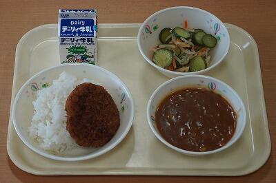 ~今日はふるさと給食の日です。都城は自然に恵まれた農場がたくさんあり素晴らしい農畜産物が育ちます。今回は豊かな自然と生産者さんの愛情の中、育てられた美味しい豚肉を使用した「都城メンチ」とみんさんに大人気の給食のカレーとがコラボレーションした「みやこのじょうメンチゃうまいカレー」です。~