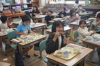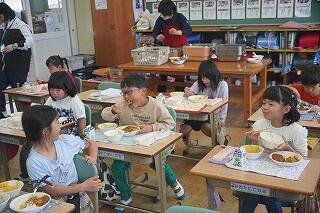 普段見られない給食中の子どもたちの様子にほっこりした家庭教育学級の皆さんでした。