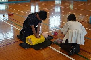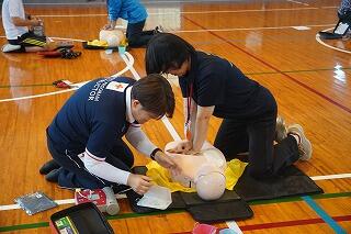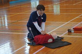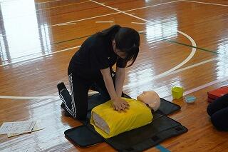 病気や事故などで心停止になった人を救うには、救急車が到着するまでの間に、そばに居合わせた人が速やかに心肺蘇生などの応急手当を行う必要があります。いざというときのために、毎年学校では実施しています。