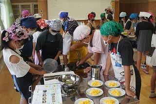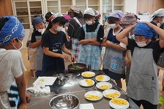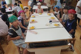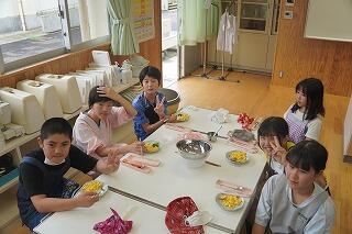 手際よく、決められ時間内に完成させました。包丁の使い方も上手でした。何よりも、みんなで協力して、楽しく活動できていてすばらしいと思いました。